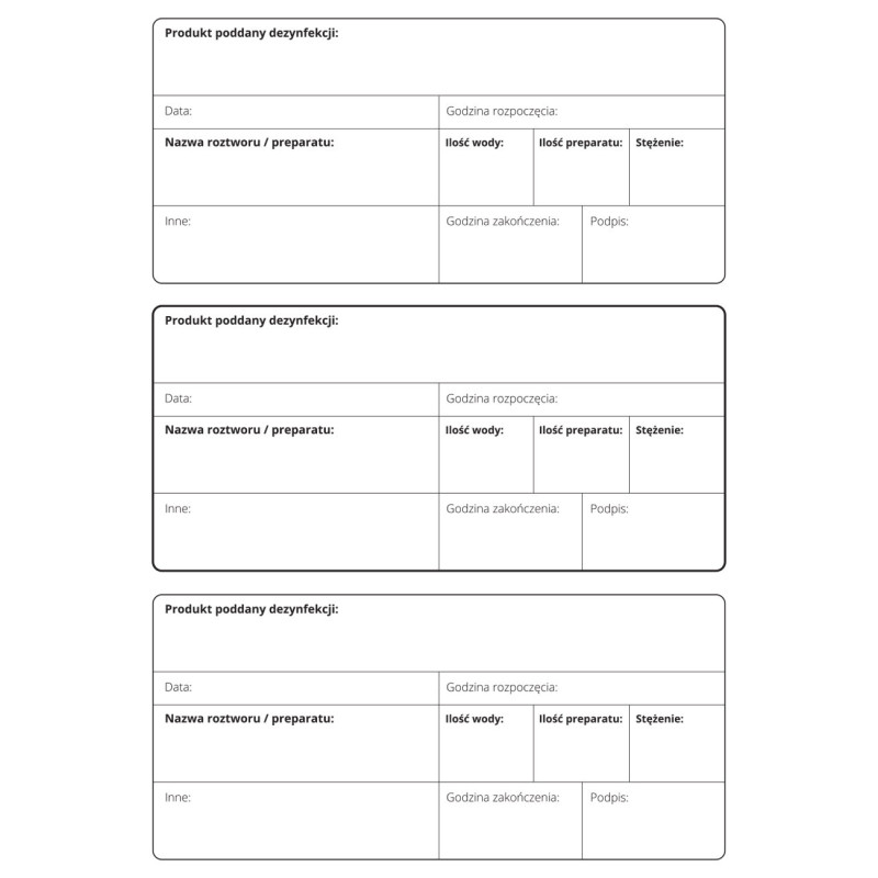 - podpisu osoby wykonującej dezynfekcję.