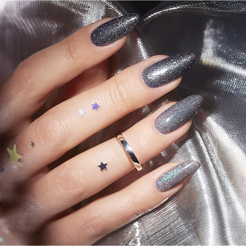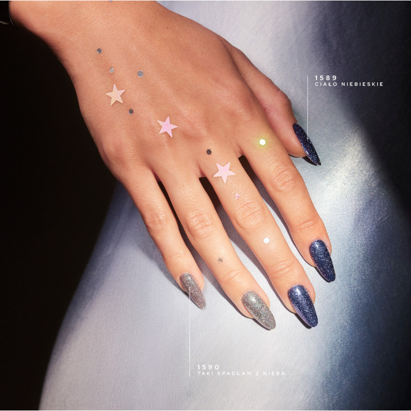 Przenieś się do świata bezkresnego kosmosu, gdzie roziskrzone drobinki tworzą własne konstelacje, a głębokie barwy dopełniają tajemniczą aurę nieskończonego wszechświata. Winter Stardust to kolekcja, w której gwiezdny pył i brokatowe rozbłyski współgrają z nasyconymi odcieniami i urzekają kobiecą elegancją. Odkryj paletę kolorów, która przeniesie Twój manicure na inną orbitę.